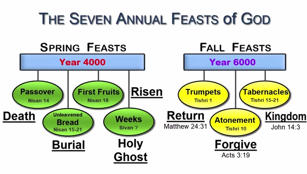The holidays mirror the death, ressurection and second coming of Christ, foretelling the exact day and hour of Christ's second coming in the year 2030 [Chart
