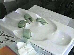 Company, i.e., a Gomco Clamp™®Ⓚ, to crimp off the foreskin, ridged band and frenulum in apprx. 18 minutes. Pain
